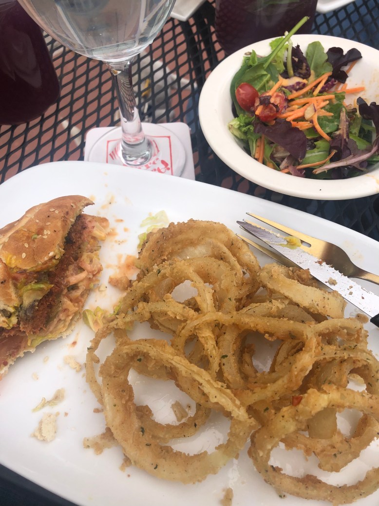 Ok so the burger was killer. Good stuff, a big beyond meat patty and yummy veggies. The onion rings nice and crispy. Half was enough for me! Luckily I shared with my partner and I did taste the jambalaya which was really good. The cornbread too.