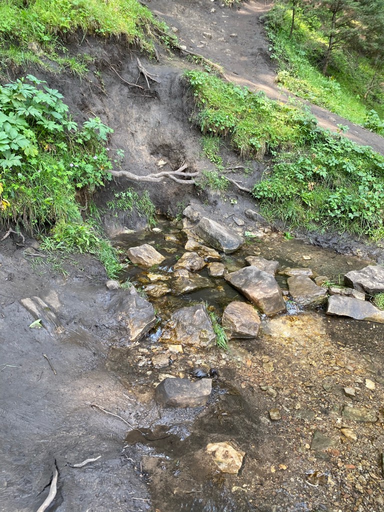 Water everywhere Water coming out of the mountain.